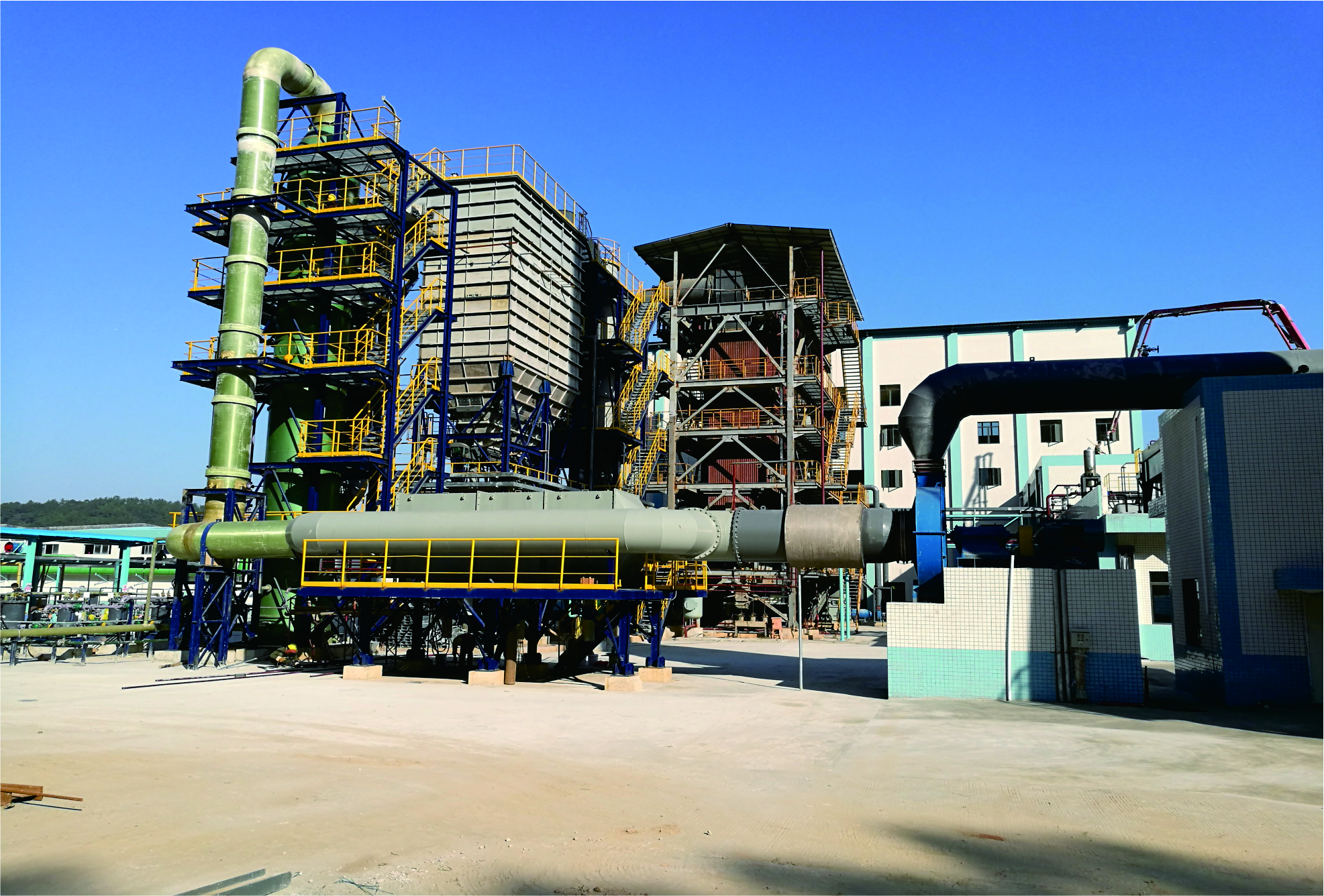 處理能力26 000 噸/年。主要處置熱值較高的廢染料、涂料、漆渣、蒸餾殘?jiān)?、廢有機(jī)溶劑、有機(jī)樹脂類廢物和廢藥物、農(nóng)藥廢物、廢活性炭等廢物。處置裝置主要包括預(yù)處理及進(jìn)料系統(tǒng)、焚燒系統(tǒng)、煙氣處理系統(tǒng)等四大部分。廢物經(jīng)配伍進(jìn)入焚燒系統(tǒng),經(jīng)回轉(zhuǎn)窯、二次燃燒室徹底燃燒,并保證煙氣在二次燃燒室的停留時(shí)間大于2秒。高溫?zé)煔饨?jīng)余熱鍋爐回收余熱后,煙氣進(jìn)入急冷系統(tǒng),有效防止了二噁英的生成,經(jīng)冷卻后的煙氣通過循環(huán)流化床、布袋除塵、濕法脫酸后排放。煙氣排放設(shè)有在線監(jiān)控系統(tǒng),確保排放煙氣達(dá)到國家標(biāo)準(zhǔn)限值。公司以提高資源再生利用效率,減少和避免污染物產(chǎn)生,保護(hù)生態(tài)環(huán)境為己任。積極實(shí)施廢物和余熱的綜合利用和循環(huán)使用,全面推行清潔生產(chǎn)管理、環(huán)境管理、建立了完整的清潔生產(chǎn)、環(huán)境管理和事故應(yīng)急管理體系。